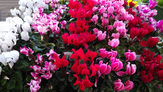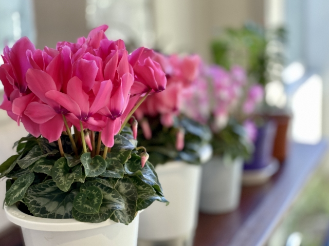 鉢植えシクラメンは、明るく風通しがよい場所で10~20℃ほどの気温を保つと元気に育ちます。