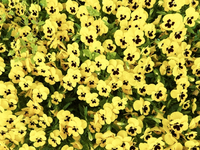 黄色のパンジーの花言葉は「つつましい幸せ」「思いやり」です。