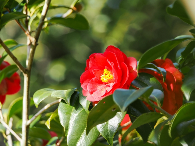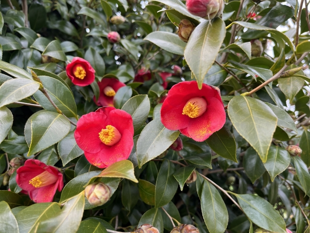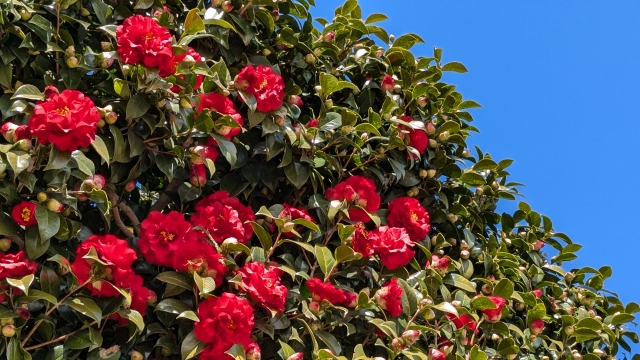 神社や古い庭園に堂々と植えられている椿も多く、魔除け・家運隆盛の象徴とみなされる場合もあります。