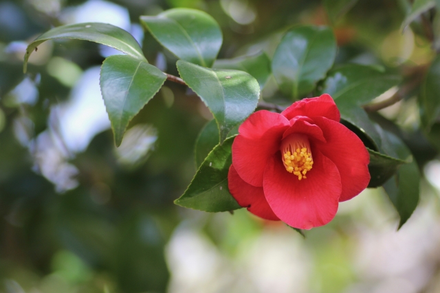 神社や古い庭園に堂々と植えられている椿も多く、魔除け・家運隆盛の象徴とみなされる場合もあります。