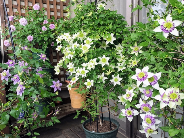 パテンス系やフロリダ系の中には、鉢植えでも花付きが良い品種があります。