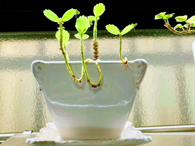 伸びすぎたカランコエは、増やす作業と同時に立て直すことができます。