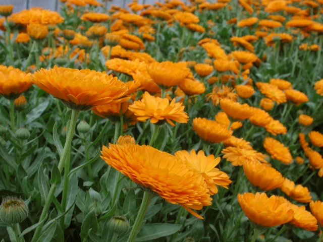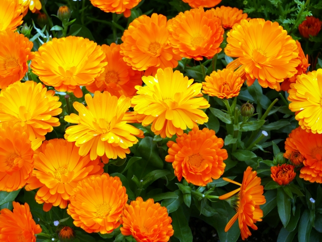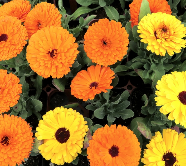 明るいオレンジや黄色の花が目を引くキンセンカ。