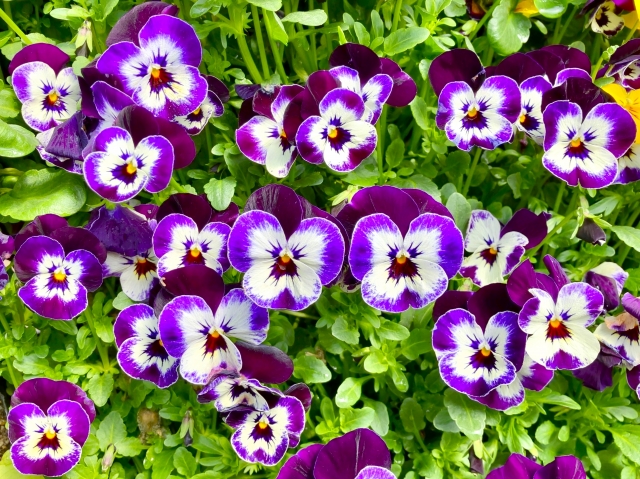 複色・模様入りのビオラは、豊かな感性や多様性を象徴する花として楽しめます。
