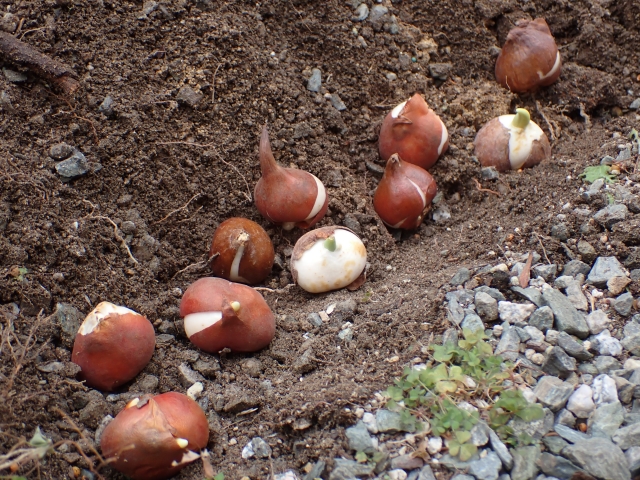 浅すぎると、芽が伸びたときに倒れやすくなり、球根が露出してしまうことがあります。