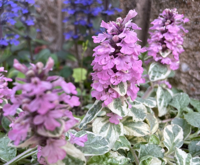 葉の色は濃い緑から銅色、紫系、斑入りまで幅広く、同じアジュガでも雰囲気が大きく変わります。