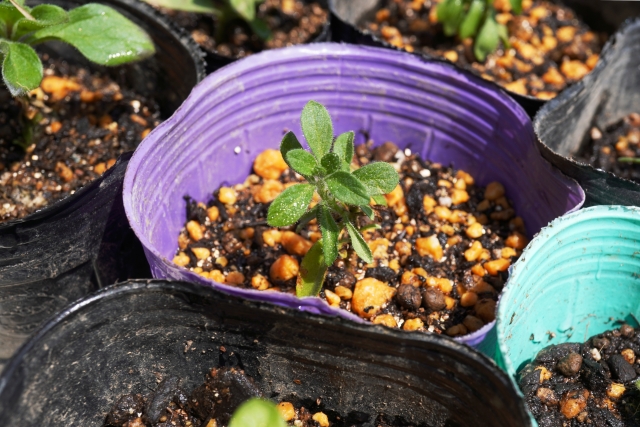 ペチュニアの苗は、本葉が3〜4枚ほど出てきたタイミングで植え替え(ポット上げ)を行うのが適しています。
