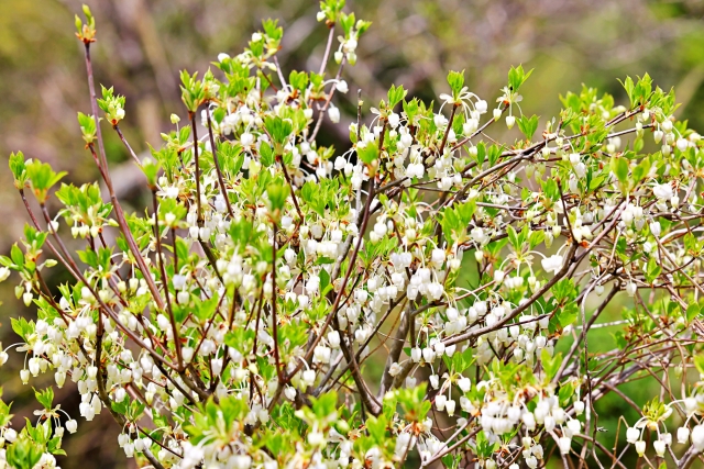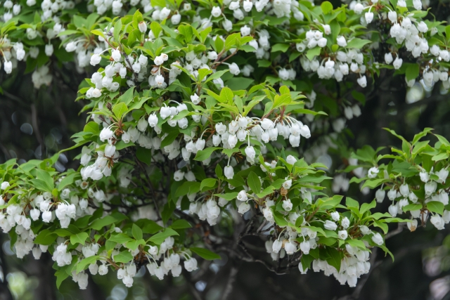 春には白く可愛らしい壺型の花を咲かせ、庭を明るく彩ります。